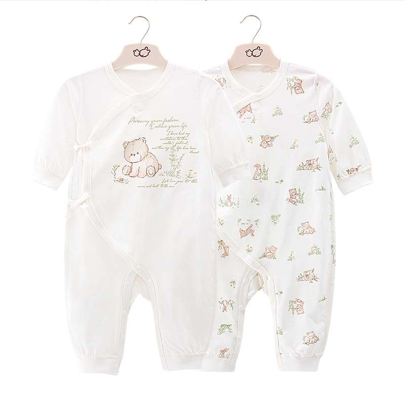 胸元に配置された可愛らしい動物の顔がアクセントとなり、赤ちゃんの愛らしさをより引き立てます。