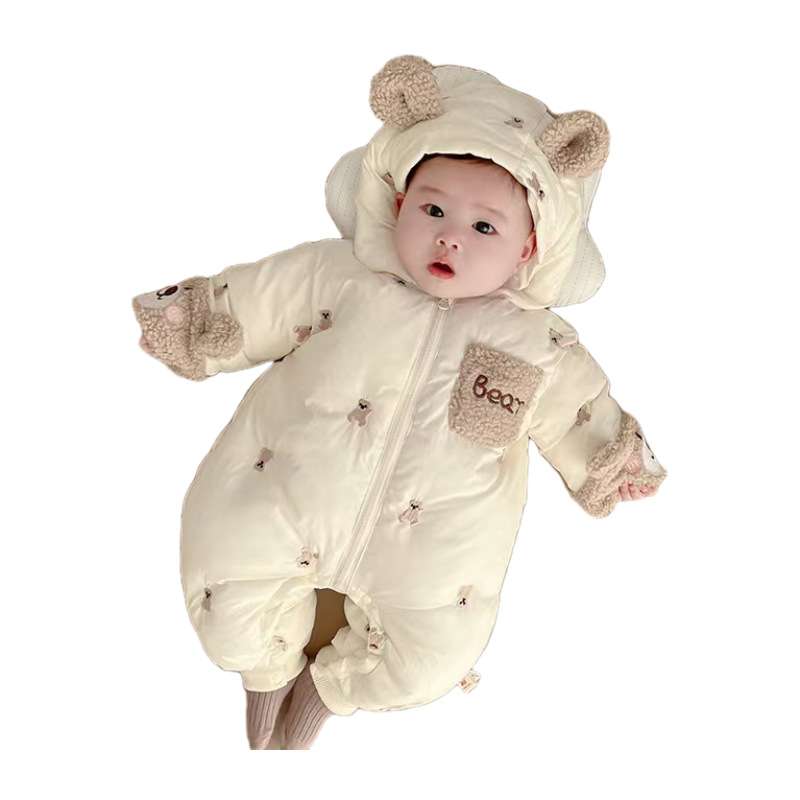 冬のお出かけも安心な防寒くまさんベビー服スーツ