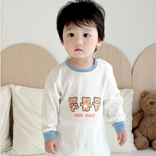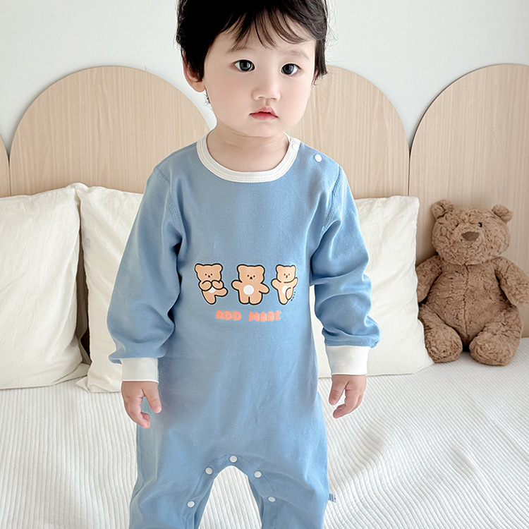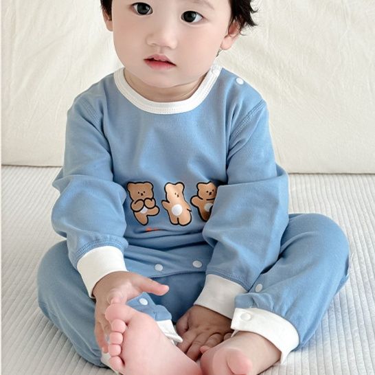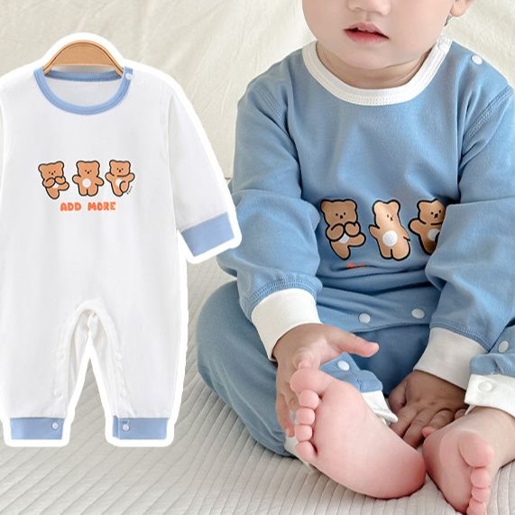可愛らしい三匹のくまさん刺繍がポイントのベビー服ロンパースです。