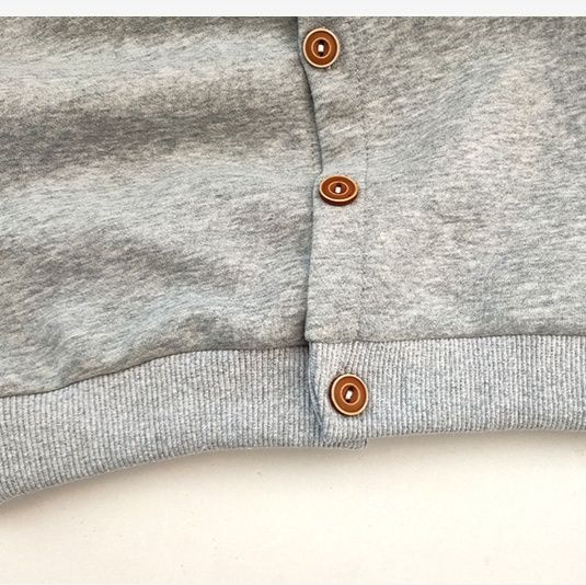 ラグラン袖のスタジャン風デザインで着脱しやすいボタン開きタイプです。
