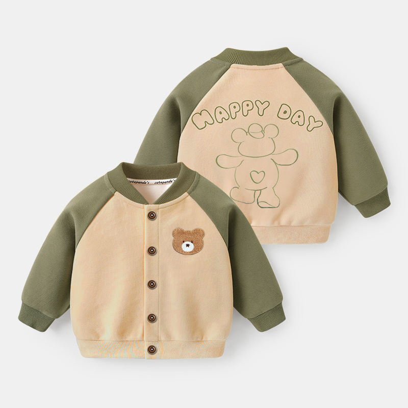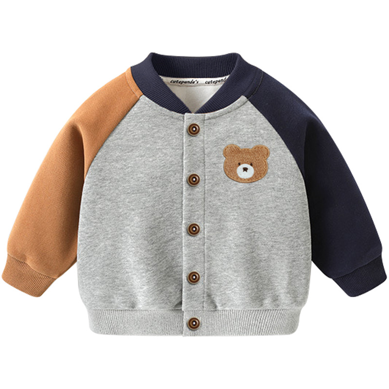 可愛らしいくまの刺繍がポイントのベビー服アウターです。